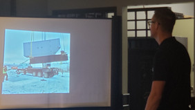 Brad brought a slideshow of all the types of work he's done, including generators, solar light systems, jumbotrons, parking lot power outlets, and even working in mine over 1 km underground!